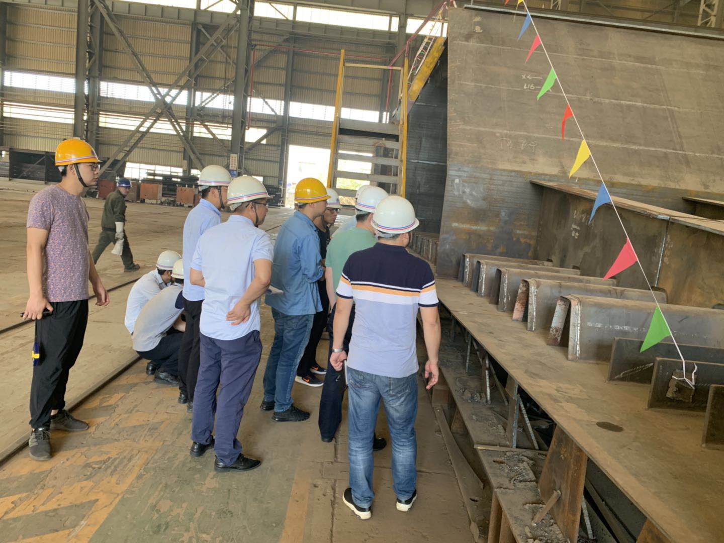 2019年7月10日,江蘇緯信工程咨詢有限公司組織在海波重科召開蘇同黎公路快速化改造工程STL-SG-02標(L16聯5-9節段)首輪制造總結會,與會人員查看了現場首輪鋼箱梁構件,聽取了制造單位的匯報,審閱了相關資料,討論形成最終意見:《蘇同黎公路快速化改造工程STL-SG-02標工程鋼箱梁首輪制作施工》內容齊全,資料詳實;首輪鋼箱梁(L16聯5-9節段)整體尺寸、線形符合設計及規范要求;構件檢驗資料齊全有效,結構、外觀良好,焊縫無損檢測合格。如圖: