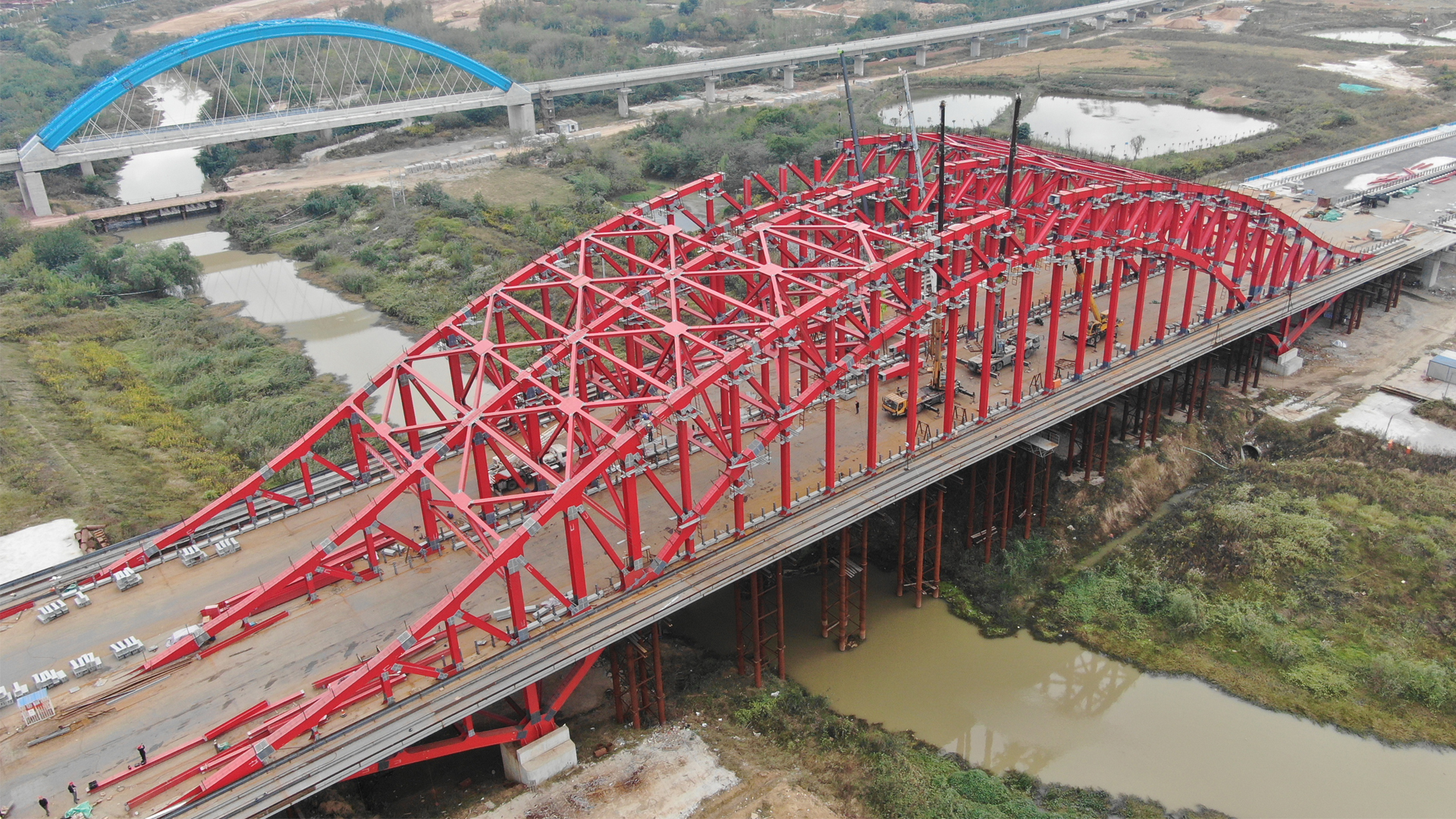 #安徽合肥集賢路跨派河橋主拱施工現場#
