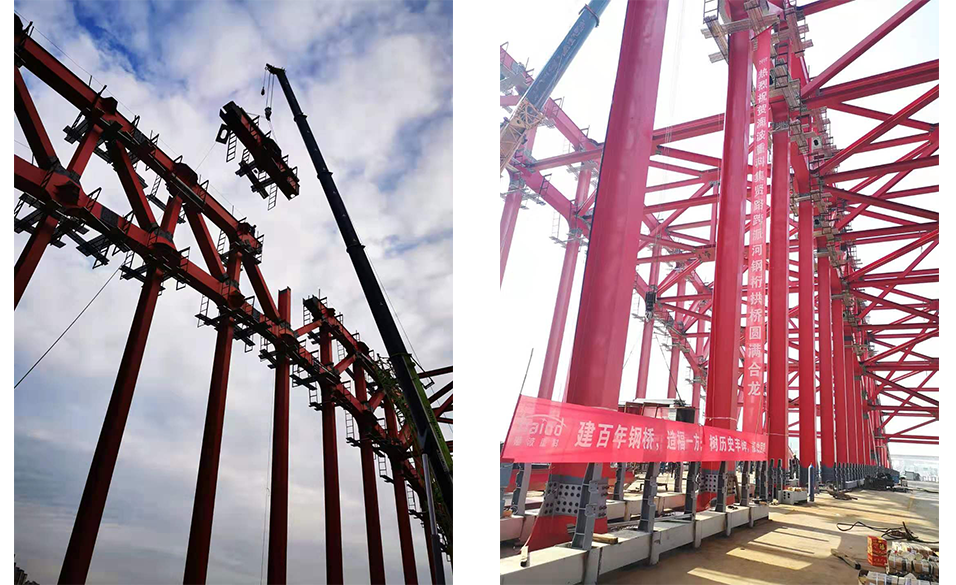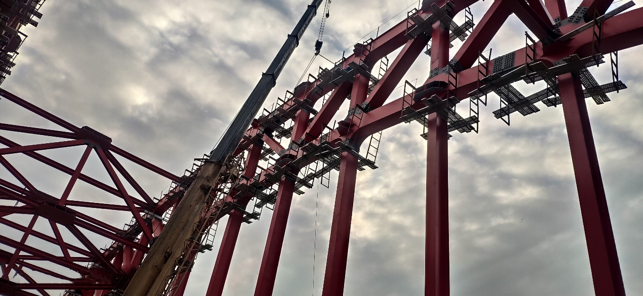 ? ? ? ?上午10時許,伴隨著起吊信號指令的發出,主拱合龍弦桿順勢吊起,在各方單位領導的共同見證下,歷時1個多小時的主拱合龍段的安裝工作順利完成,標志著合肥集賢路跨派河橋主拱正式合龍。合肥市重點工程建設管理局相關領導、安徽省公路橋梁工程有限公司集賢路項目部相關領導、安徽省公路工程建設監理有限責任公司相關領導及海波重科合肥集賢路項目部全體人員等共同見證了集賢路跨派河橋成功合龍。