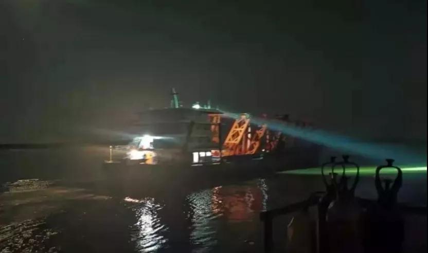 據悉,同年8月30日,四個高度為13米鋼管拱節段的鴻源7號運輸船從海波重科漢南碼頭沿長江、岷江航道抵達四川省樂山市犍為縣。此次航運全程1751公里,歷時12天到達犍為岷江特大橋橋址,這也為接下來的主橋鋼管拱的吊裝、結構裝焊、施工平臺搭設等工作打開了良好開端。