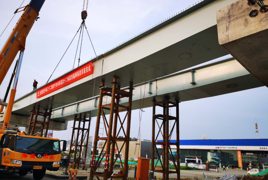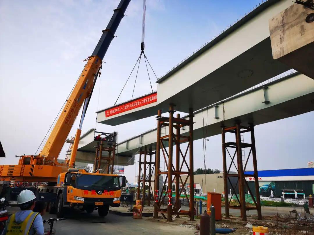 (海波重科新聞報(bào)道)2020年7月7日,由海波重科承建的濟(jì)寧西外環(huán)十二標(biāo)段鋼箱梁項(xiàng)目首吊成功,這也標(biāo)志著濟(jì)寧市預(yù)計(jì)年底建成通車的目標(biāo)又邁向了一大步。