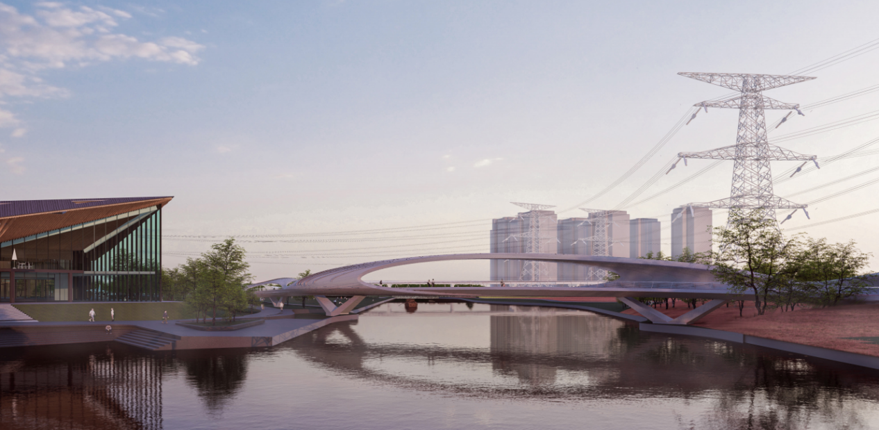 鳳鳴橋項(xiàng)目位于新吳區(qū)伯瀆河公園東側(cè),伯瀆河公園蜿蜒長達(dá) 3.7 公里,坐擁便利的地鐵交通(開發(fā)中)和豐富的景觀及人文資源,是城市級濱水公共空間。