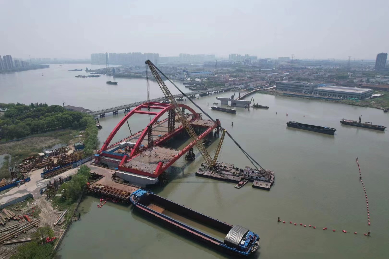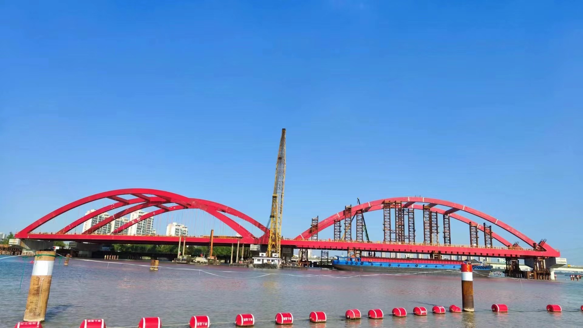 工程預(yù)計今年年底竣工。建成后的新勝浦大橋?qū)⒕徑鈪卿两瓋砂督煌ㄟ\(yùn)輸壓力,橋下空間還能適應(yīng)1000噸級船舶大型化和集裝箱運(yùn)輸,節(jié)約運(yùn)輸成本。將會給吳淞江兩岸居民交通出行帶來極大便利,也是加快構(gòu)建長江三角洲地區(qū)高等級航道網(wǎng),促進(jìn)上海國際航運(yùn)中心建設(shè)的重要一環(huán)。