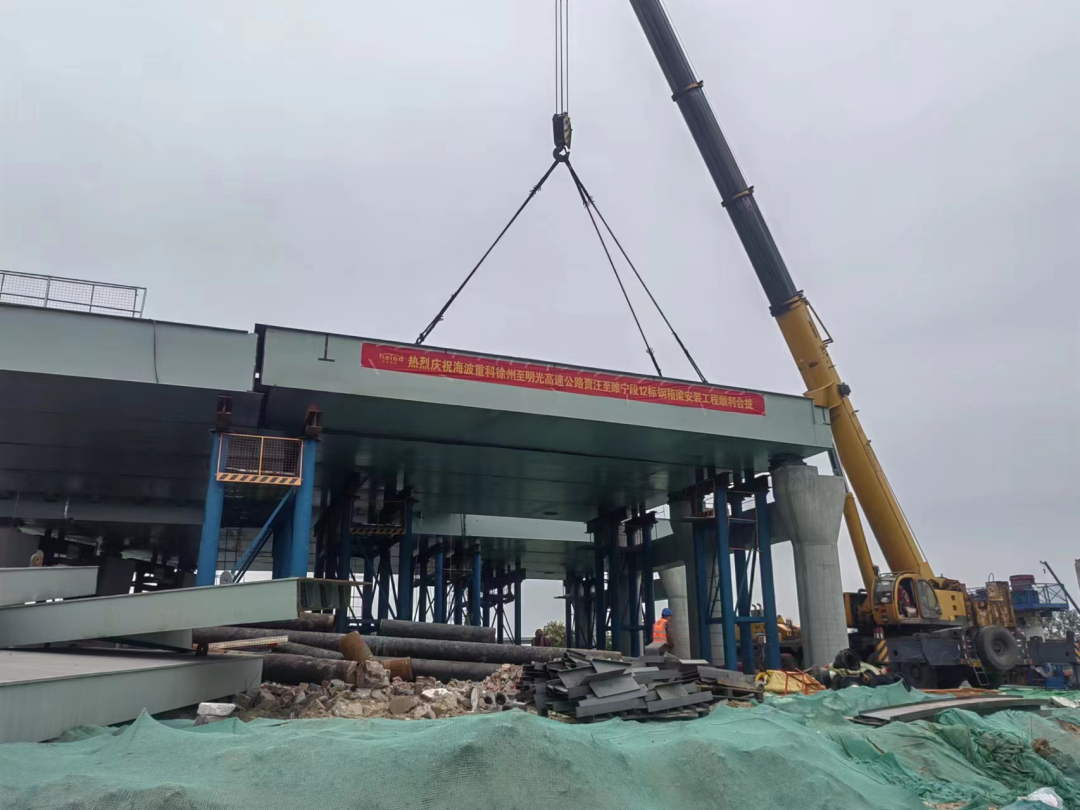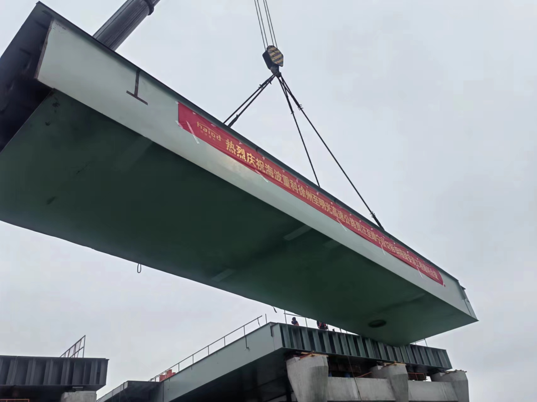 ? ? ? ?2023年4月22日,海波重科參建的徐州至明光高速公路賈汪至睢寧段XM-TJ12標段鋼箱梁安裝工程順利完成合攏。這不僅為后續施工奠定了良好基礎,也為全線通車的目標推進了重要一步!